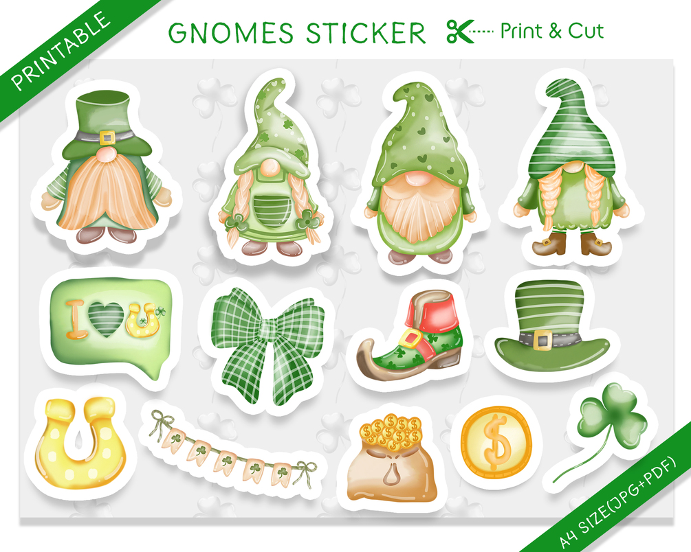 ST Satrick's Day Watercolor Sticker : -1 JPG (A4 size 300dpi) / 1 PDF file.(A4 size)